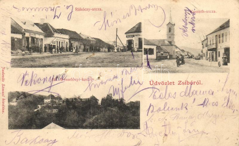 Zsibó, Rákóczi és Kossuth utca, Br. Wesselényi kastély, Róth Adolf üzl...