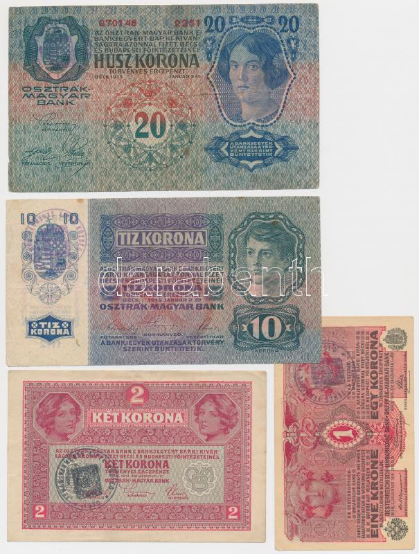 1913. 20K + 1915. 10K + 1916. 1K + 1917. 2K mindegyik "Temes Vármegye Lippa Község 1910" felülbélyegzéssel T:II,III tűlyuk