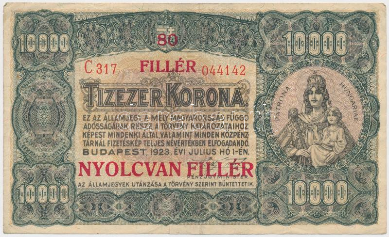 https://www.darabanth.com/en/235-Online-auction/235.0/Numismatics/Hungarian-Banknotes~9/1923-10000K-80-FILLER--NYOLCVAN-FILLER-felulbelyegzessel-nyomdahely-jeloles-nelkul-T~II1074002