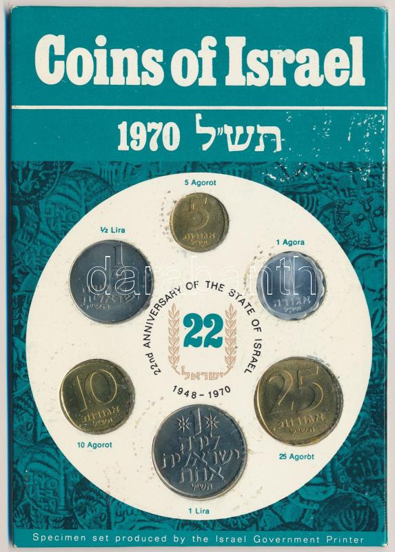 Izrael 1970. 1A - 1L "22 éves Izrael állam, Jeruzsálem Minta Szett" 6x... https://www.darabanth.com/en/235-Online-auction/235.0/Numismatics/Worldwide-coins~14/Izrael-1970-1A--1L-22-eves-Izrael-allam-Jeruzsalem-Minta-Szett-6xklf-fempenz-szett-diszt~II1075628