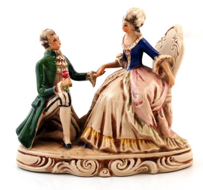 Barokk jegyespár, német figurális porcelán, kézzel festett, jelzett, a...