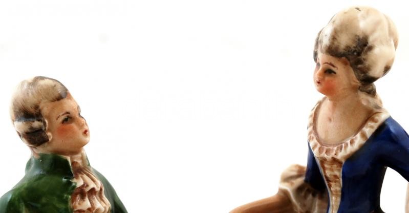Barokk jegyespár, német figurális porcelán, kézzel festett, jelzett, apró kopásnyomokkal, m: 13 cm