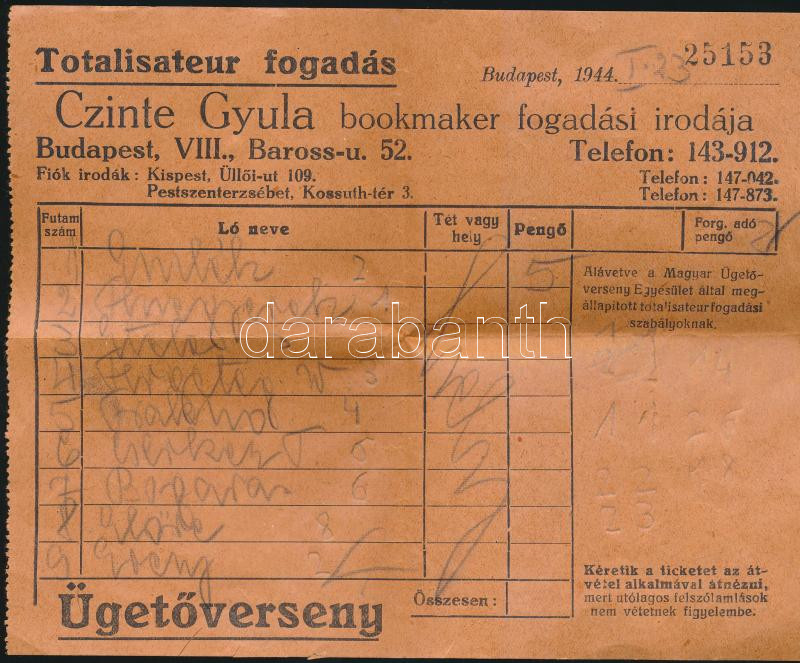 https://www.darabanth.com/en/235-Online-auction/235.0/Other-collectibles/Documents~400032/1944-BpVIII-Totalisateur-fogadas-Czinte-Gyula-bookmaker-fogadasi-irodaja-altal-kiallitot~II1077694
