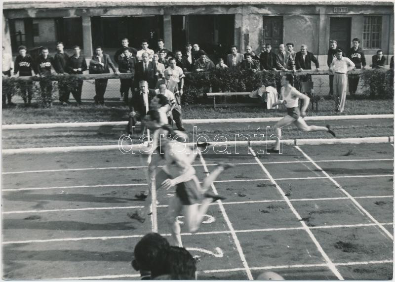 1953 Budapesti Bástya-Bp. Honvéd atlétikai Békekupaverseny: férfi 100m, jelzett, verzón feliratozva, 13x18cm