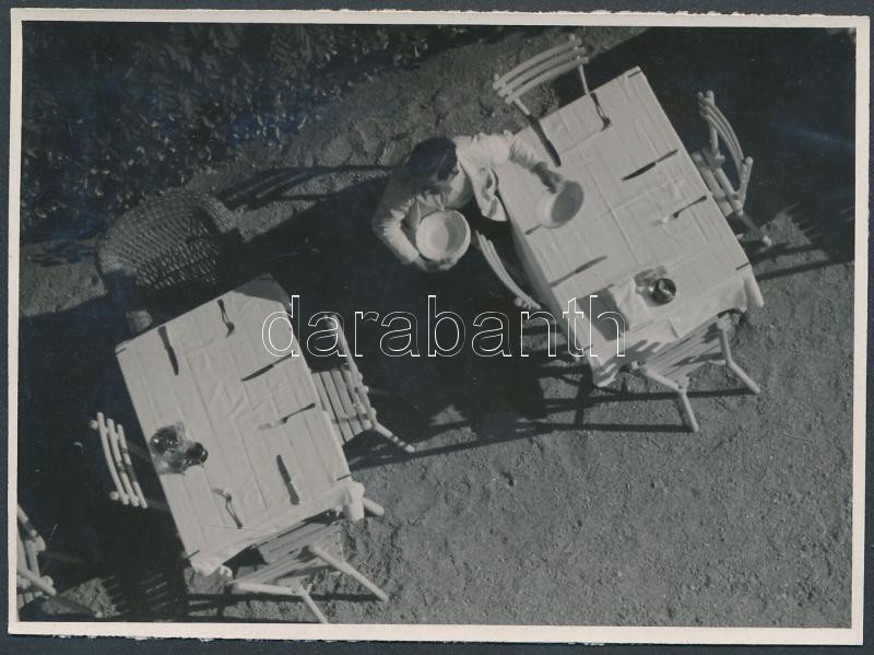 cca 1935 Dr. Csörgeő Tibor (1896-1968): Terítés ebédre, jelzés nélküli vintage fotó a szerző hagyatékából, 8x11 cm