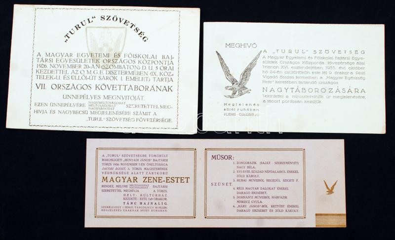 1933 3 db meghívó a Turul Szövetség rendezvényeire