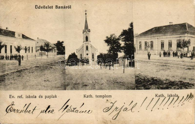 Bana, Katolikus templom és iskola, Evangélikus református iskola és paplak (vágott / cut)