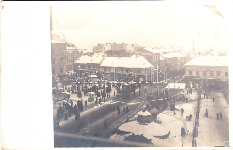 Budapest V. Fővám tér télen, üzletek, Cafe Paris, villamos, photo