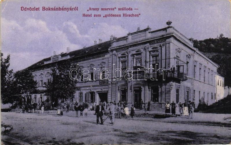 Boksánbánya, Arany szarvas szálloda, Takarékpénztár, A. Fonciere biztosító / hotel, bank, insurance company (EK)