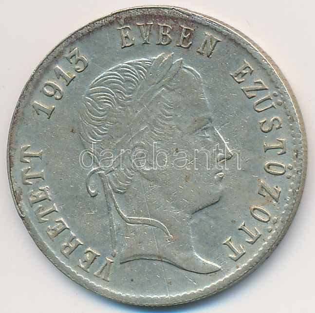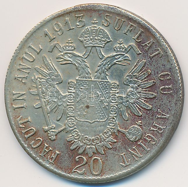 1913. 20Kr "Veretett 1913 évben ezüstözött" játékpénz magyar és román ...