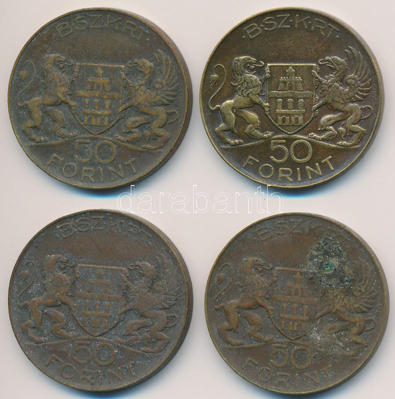 1946-1949. 50Ft "B.SZ.K.R.T. (Budapest Székesfővárosi Közlekedési Részvénytársaság)" közlekedési bárca (4x) T:2-