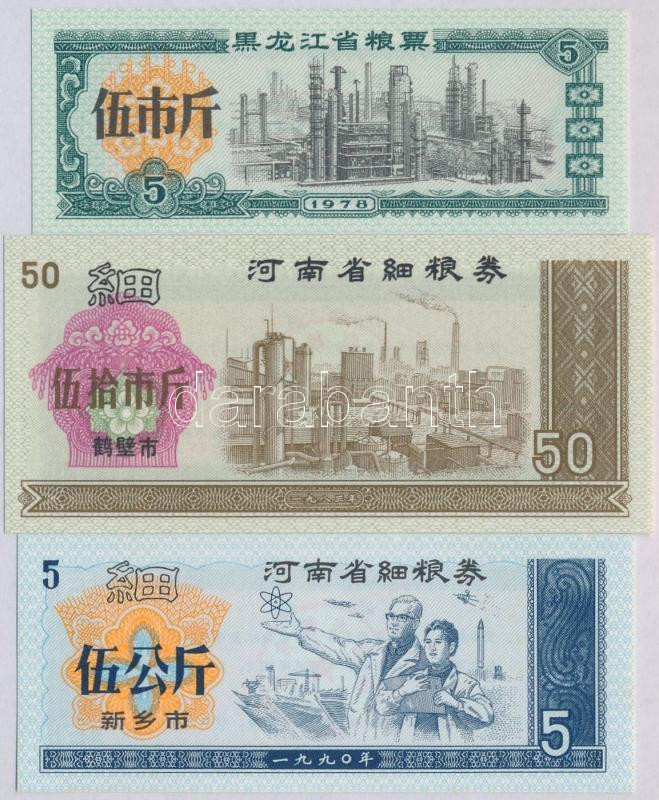 Kína ~1970-1980. 3db klf rizsjegy T:I