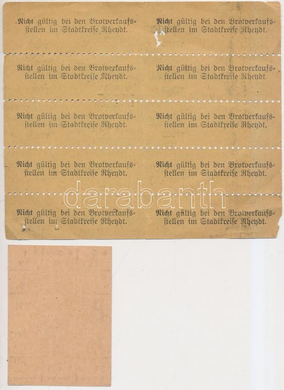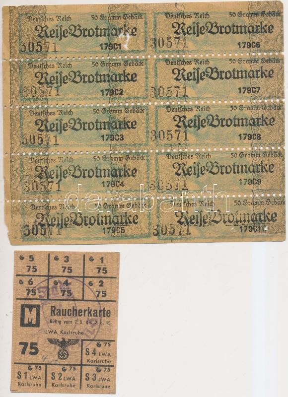 Description: Német 3. Birodalom ~1941. Kenyérjegy 50gr-ról 10db-os ívben + 1945. Dohányjegy bélyegzéssel T:II- ly., I
