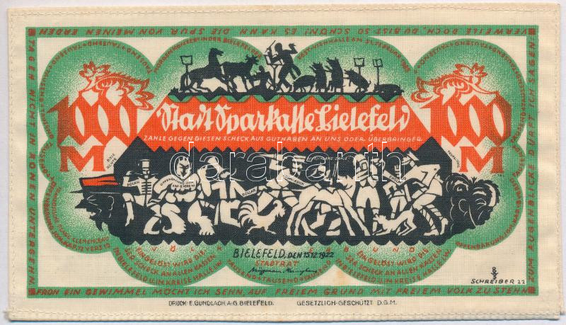 Németország / Weimari Köztársaság / Bielefeld / 1922. 1000M zöld, vász...
