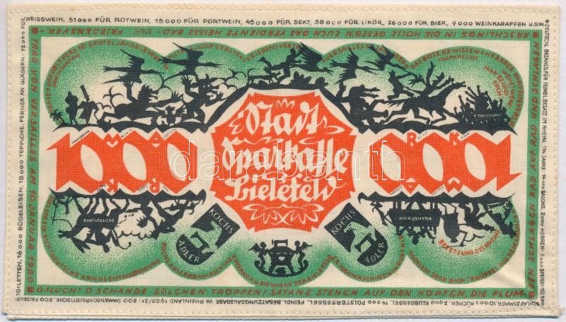 Németország / Weimari Köztársaság / Bielefeld / 1922. 1000M zöld, vászon, bélyegzés nélkül T:I