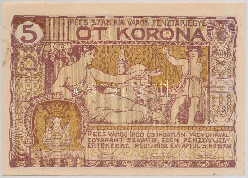 https://www.darabanth.com/en/236-Online-auction/236.0/Numismatics/Emergency-Coins-and-Notes~200006/Pecs-1920-5K-penztarjegy-TII-hajtatlan-szakadas~II1083397