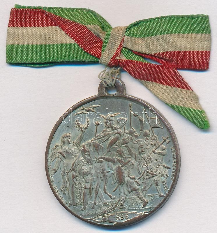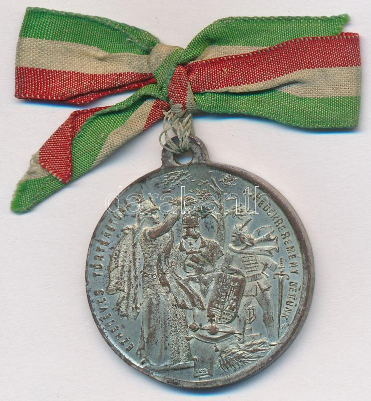 1896. "Ezredéves Történetünk Ezredekre Remény Nekünk - Honfoglalás" millenniumi ezüstözött Br emlékérem "Steiner Ármin (éremüzem, 19. század)" gyártói jelzéssel, szalagon (32,5mm) T:2-