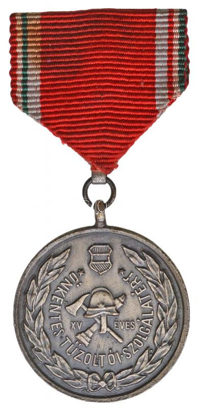 1958. "15 Éves Önkéntes Tűzoltói Szolgálatért / Belügyminisztérium Országos Tűzrendészeti Parancsnoksága" fém kitüntetés mellszalagon (35mm) T:2,2-