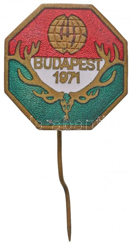 1971. "Budapest 1971. (Vadászati Világkiállítás)" zománcozott Br kitűző (25x25mm) T:2