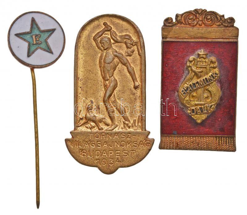 3db klf jelvény és kitűző, közte 1934. "Tornász Világbajnokság Budapes... https://www.darabanth.com/en/236-Online-auction/236.0/Numismatics/Faleristics-medals-orders-badges~200016/3db-klf-jelveny-es-kituzo-kozte-1934-Tornasz-Vilagbajnoksag-Budapest-aranyozott-Br-gombl~II1081507