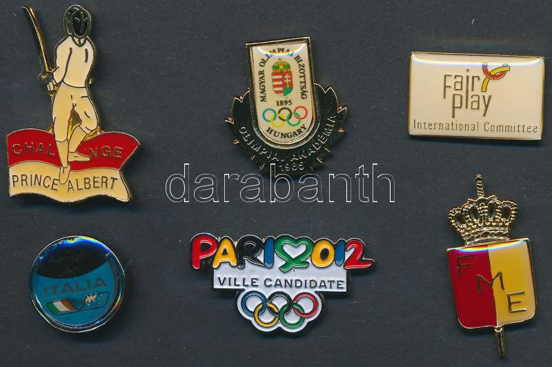 6db klf zománcozott fém sportjelvény, közte 1985. "Magyar Olimpiai Bizottság 1895 - Olimpiai Akadémia 1985" T:1-,2