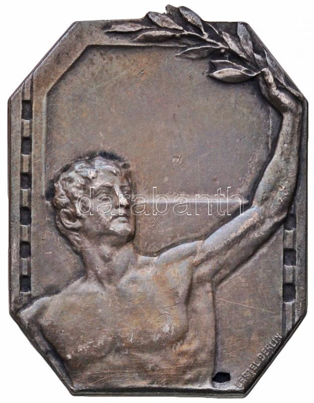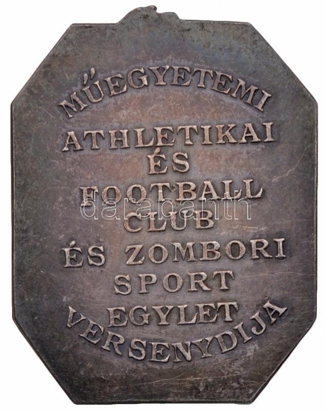 Description: ~1920-1930. "Műegyetemi Athletikai és Football Club és Zombori Sport Egylet Versenydíja" jelzett Ag díjérem "CERTEL BERLIN" gyártói jelzéssel (14.43g/34x26mm) T:2