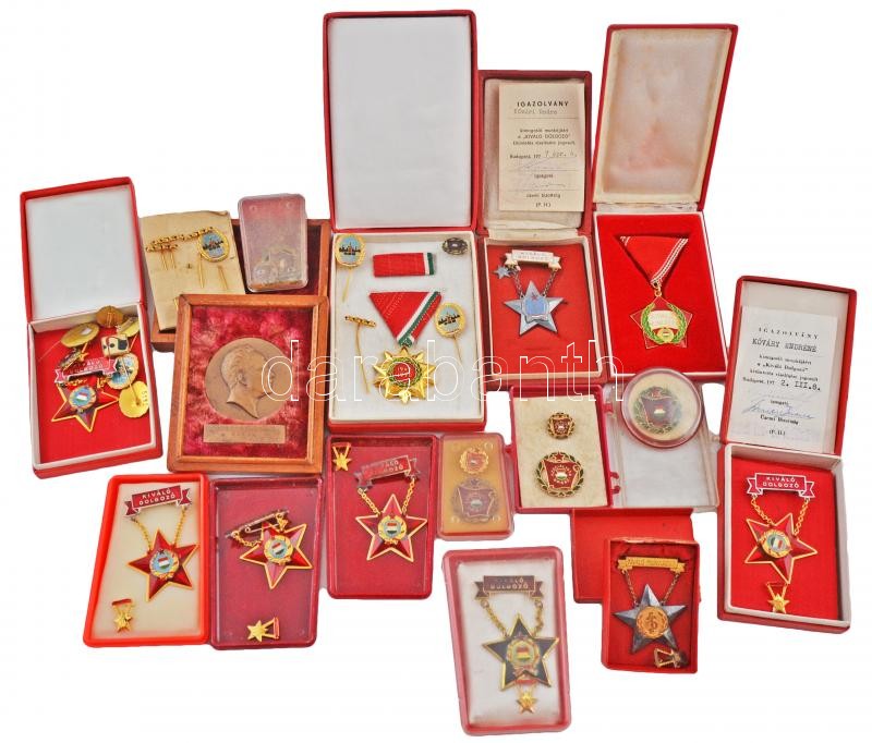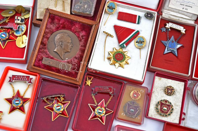 Kis doboznyi szocialista kitüntetés és jelvény, főleg "Kiváló Dolgozó" kitüntetések, legtöbb tokban T:vegyes