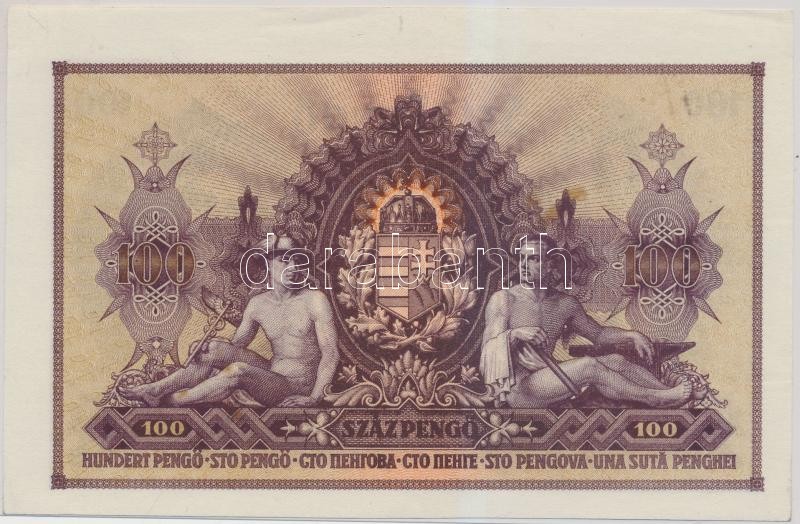 1943. 100P "Szálasi-kiadás" sor- és sorozatszám nélkül T:I-,II hajtatlan, foltos