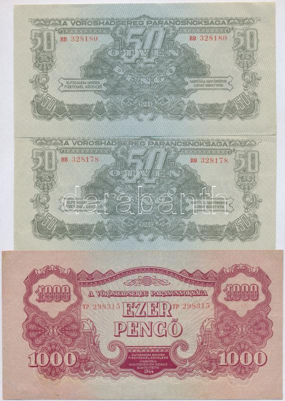 1944. 50P (2x) egyugrású sorszámmal + 1000P mindhárom "A Vöröshadsereg...