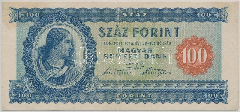 1946. 100Ft vízjeles T:III,III- tűlyuk