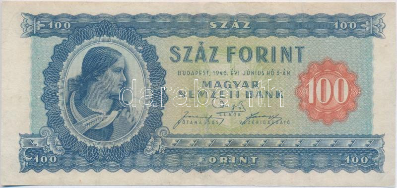 1946. 100Ft vízjeles T:restaurált
