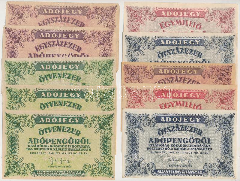 1946. 10db-os vegyes adópengő tétel, közte fordított címeres, és több sor- és sorszám nélküli T:vegyes