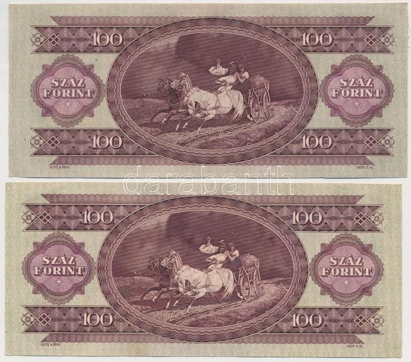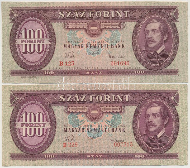 1957. 100Ft (2x), nyomdai papírránccal T:II,II- szép papír