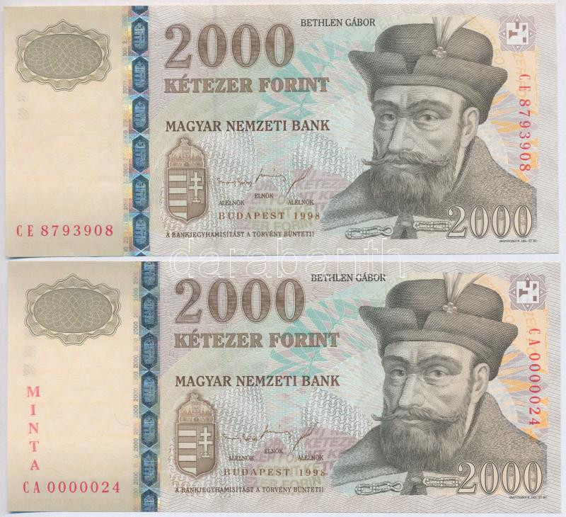 1998. 2000Ft "MINTA" felülnyomással és "CA 0000024" sorszámmal + 2000F...