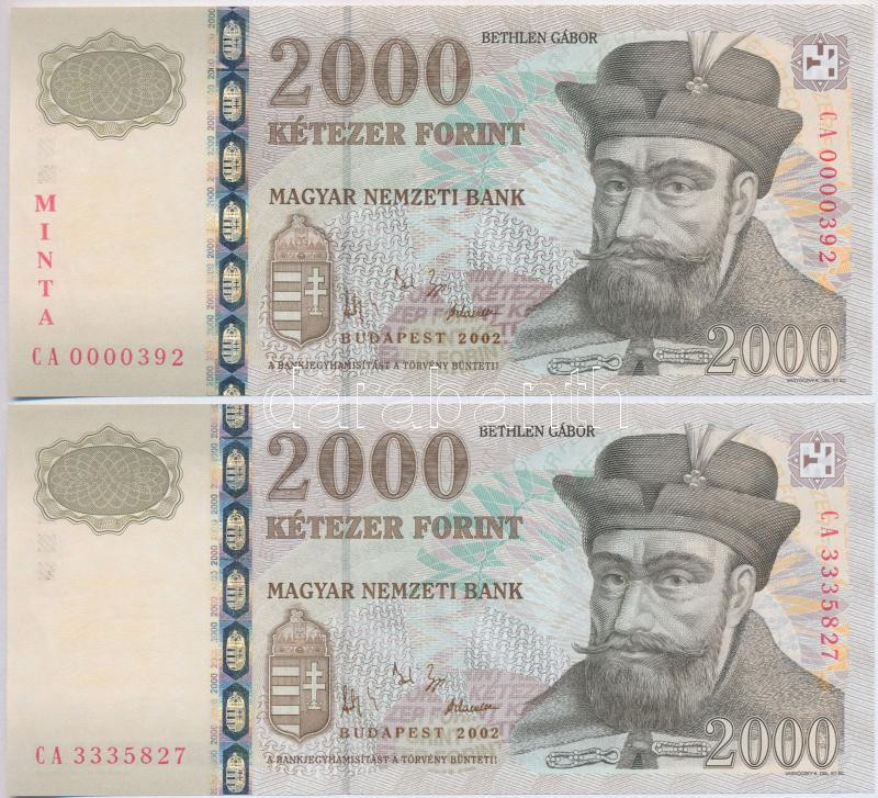 2002. 2000Ft "MINTA" felülnyomással és "CA 0000392" sorszámmal + 2000Ft "CA" T:I