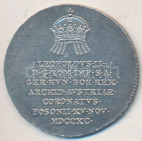 Description: Habsburg Birodalom / Pozsony 1790. "II. Lipót pozsonyi koronázása" Ag zseton (2.26g/20mm) T:2