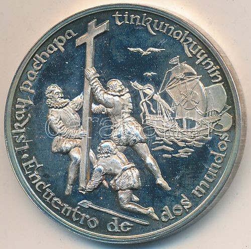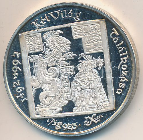 Lapis András (1942-) / Szabó Géza (1939-) 1992. "Két világ találkozása" Ag dísztokban számozott tanúsítvánnyal (33g/0.925/42,5mm) T:PP felületi karc