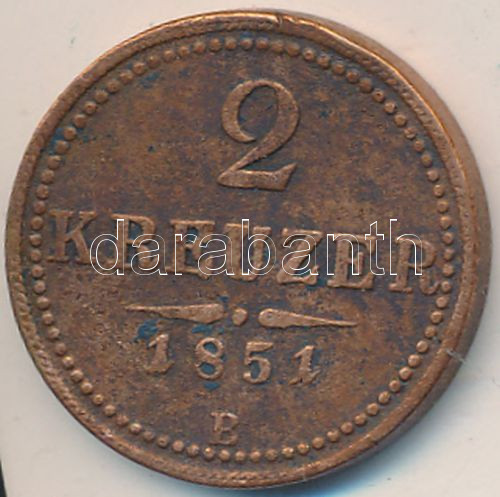 https://www.darabanth.com/en/236-Online-auction/236.0/Numismatics/Hungarian-metal-and-silver-coins~200008/1851B-2Kr-Cu-T2-~II1080937