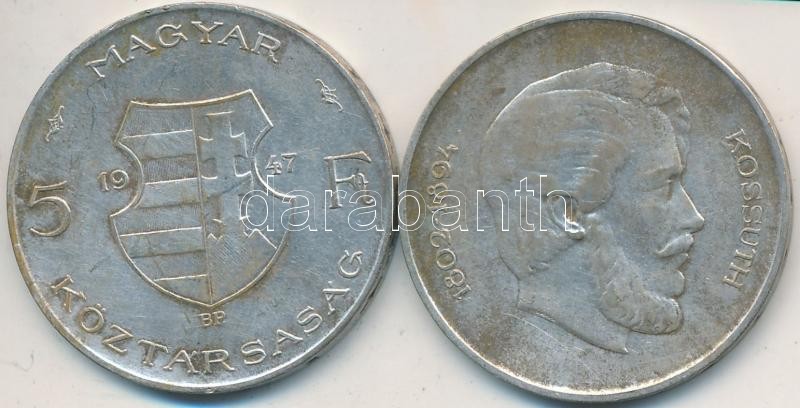 https://www.darabanth.com/en/236-Online-auction/236.0/Numismatics/Hungarian-metal-and-silver-coins~200008/1947-5Ft-Ag-Kossuth-2x-T2-3~II1082349