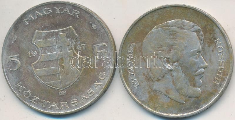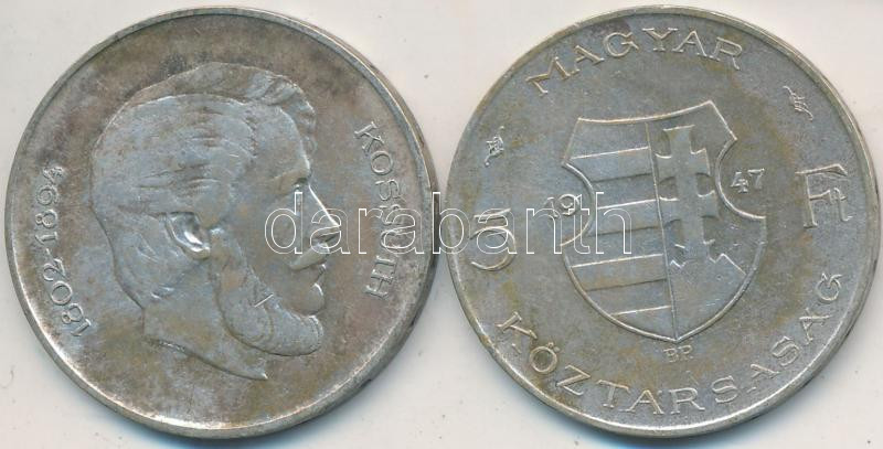 https://www.darabanth.com/en/236-Online-auction/236.0/Numismatics/Hungarian-metal-and-silver-coins~200008/1947-5Ft-Ag-Kossuth-2x-T2-3~II1083191