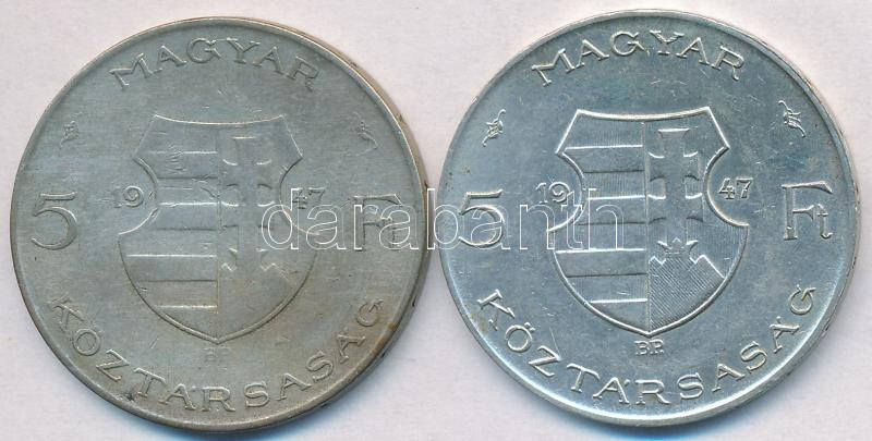 1947. 5Ft Ag "Kossuth" (2x) T:2-,3