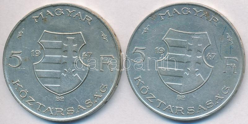 1947. 5Ft Ag "Kossuth" (2x) T:2-,3