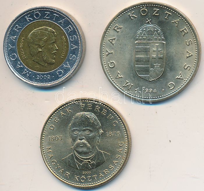 https://www.darabanth.com/en/236-Online-auction/236.0/Numismatics/Hungarian-metal-and-silver-coins~200008/1994-100Ft-plus-2002-100Ft-Kossuth-plus-2003-20Ft-Deak-T2~II1081208