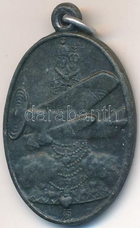 Tóth Gyula (1893-1970) ~1915. "Borostyános Szent Szűz őrizz meg minket" ovális fém repülős medál (29x18mm) T:2