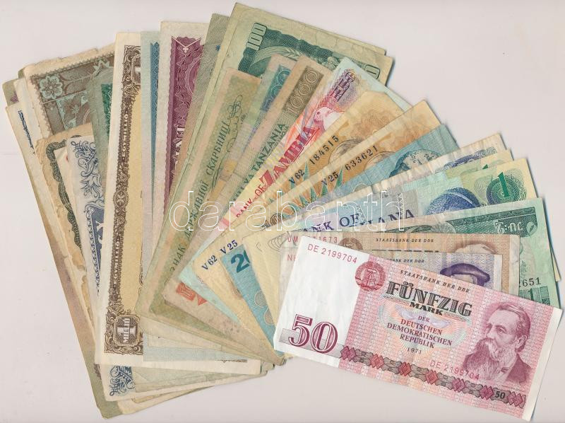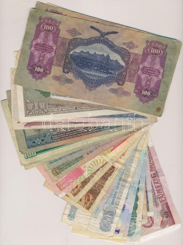 Description: 30db-os vegyes magyar és külföldi bankjegy tétel, közte érdekesebb darabokkal is T:vegyes