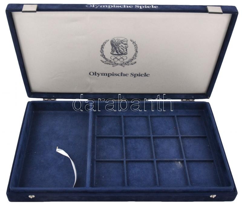 "Olympische Spiele" bársonyborítású éremtartó kazetta 12db hellyel használt állapotban