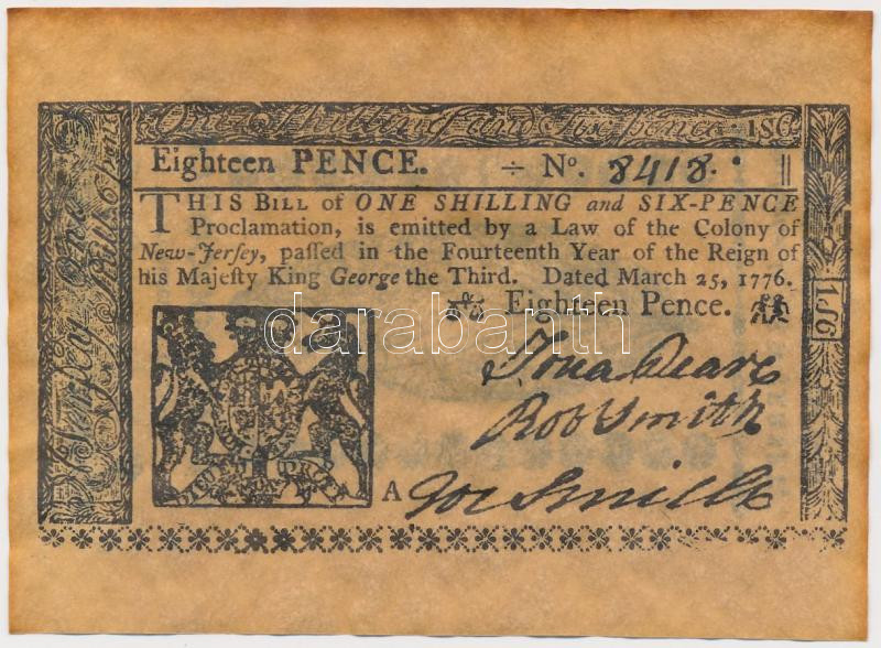 Amerikai Egyesült Államok / New Jersey 1776. 18P replika T:I,I-