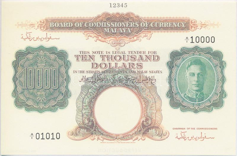 Malaya 1941. 10.000 Dollars replica C:UNC