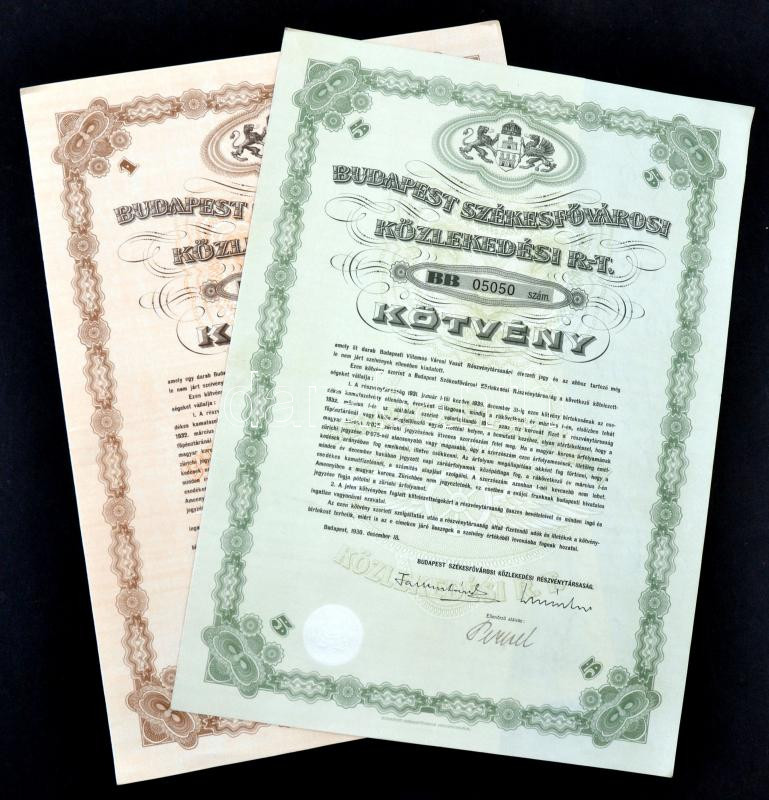 1930. "Budapest Székesfővárosi Közlekedési Rt." 1 + 5 "BB" kötvénye szelvények nélkül T:I-