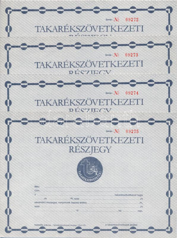 ~1970-1980. "Takarékszövetkezeti Részjegy" kitöltetlen (4x) sorszámkövetőek T:I